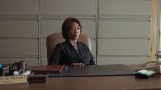 Oscar nominee Alfre Woodard (Cross Creek) stars as Bernadine Williams, the warden of a prison that executes inmates. The film opens with the botched execution of one Victor Jimenez (Alex Castillo). The stark, graphic nature of the lethal injection highlights one of the more recent criticisms of the death penalty, that this preferred method of quiet execution may not actually be all that humane. While Victor doesn’t struggle, it takes several painful attempts for the technician to find a vein for the fatal drugs to enter his system, and once they do, they don’t act properly, leaving Victor to gasp, convulse, and scream in his final moments rather than pass peacefully.