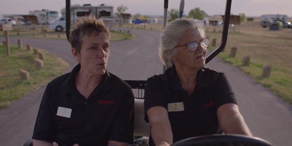 There are a couple moments where the edit comes up just a tad short on the narrative logic front. After Dave falls ill, he asks Fern what her next destination will be, and she mentions a sugar beet harvest. Dave tells her that this particular event is still months away, and he offers her a job with him in South Dakota. I recall that in the moment I was wondering what Fern would do in the meantime, but then it just cuts to the next thing, not really making it clear that the progression to Wall Drug was meant to be that very interim. Similarly, when Fern’s van breaks down (I believe in Nebraska), she visits her sister in California to borrow money. Again, this moment is almost instantaneous, even though it’s a major detour from her odyssey. I should say that this doesn’t detract from the overall film in any major way, but it stuck out to me while watching, enough to make me say that this doesn’t quite reach the pinnacle in the specific area of editing. It’s still a great film, though, and if this technique got Zhao’s message across to her own liking, who am I to really argue?