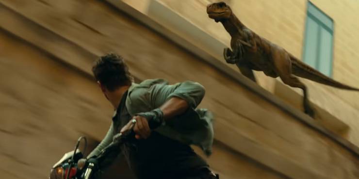 Still, he does at least make a slight effort at a divergent thought, essentially turning the first act into a Mission: Impossible movie, filled with espionage, rooftop and motorcycle chases, and an underground dinosaur black market that involves dino cockfighting and tiny dinosaur barbecue (not to be confused with Dinosaur Bar-B-Que back in upstate NY, which to this day has the best ribs I’ve ever tasted). The film even tickles my anti-hipster bias, as one of the few civilians who gets chomped is some loser on an e-scooter. Unfortunately, the idea is a half-baked ripoff, and it’s never paid off in any significant way. You could have easily cut out the entire sequence in Malta where the chase happens and not missed anything. Hell, for two of the plot device characters, it’s literally just a layover point on their flights. Minor cosmetic changes to other characters or plot beats renders the entire thing pointless, along with the rest of the movie.