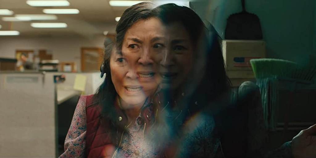 And then, of course, there’s the thematic purpose of using the edit to illustrate the various jumps between universes. No better do we see this than when we first meet Joy as Jobu Tupaki. Sitting in a bar drinking a beer in her hoodie, Joy, now possessed by her multiversal self, tilts her head from one side to another, with each movement aligning with a complete change in the scenery around her, as if she’s flipping channels on the television. This instantly keys the viewer in to the randomness of everything that’s about to follow, as well as the cold, calculating threat that Jobu represents.