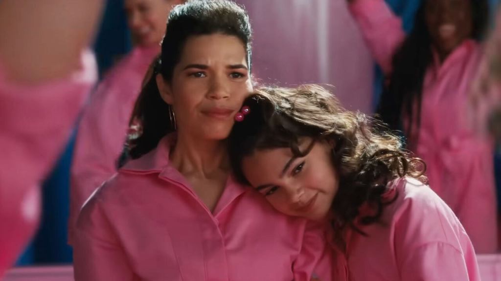 There is almost nothing to Gloria in Barbie. She’s a generic working mom archetype who can’t relate to her daughter… until the script says that she does. There’s no actual work involved with fixing their relationship, just the plot demand that their issues be resolved so we can get to the third act. She’s somehow responsible for creating Stereotypical Barbie’s existential crisis, but the reasoning behind it doesn’t extend to any other character. She imagines “Irrepressible Thoughts of Death” Barbie and draws some pictures, and that somehow makes the character traits manifest, but when the Kens take over Barbie Land, the Mojo Dojo Casa House ends up becoming a hot seller in the real world. So does our reality influence Barbie Land or the other way around?