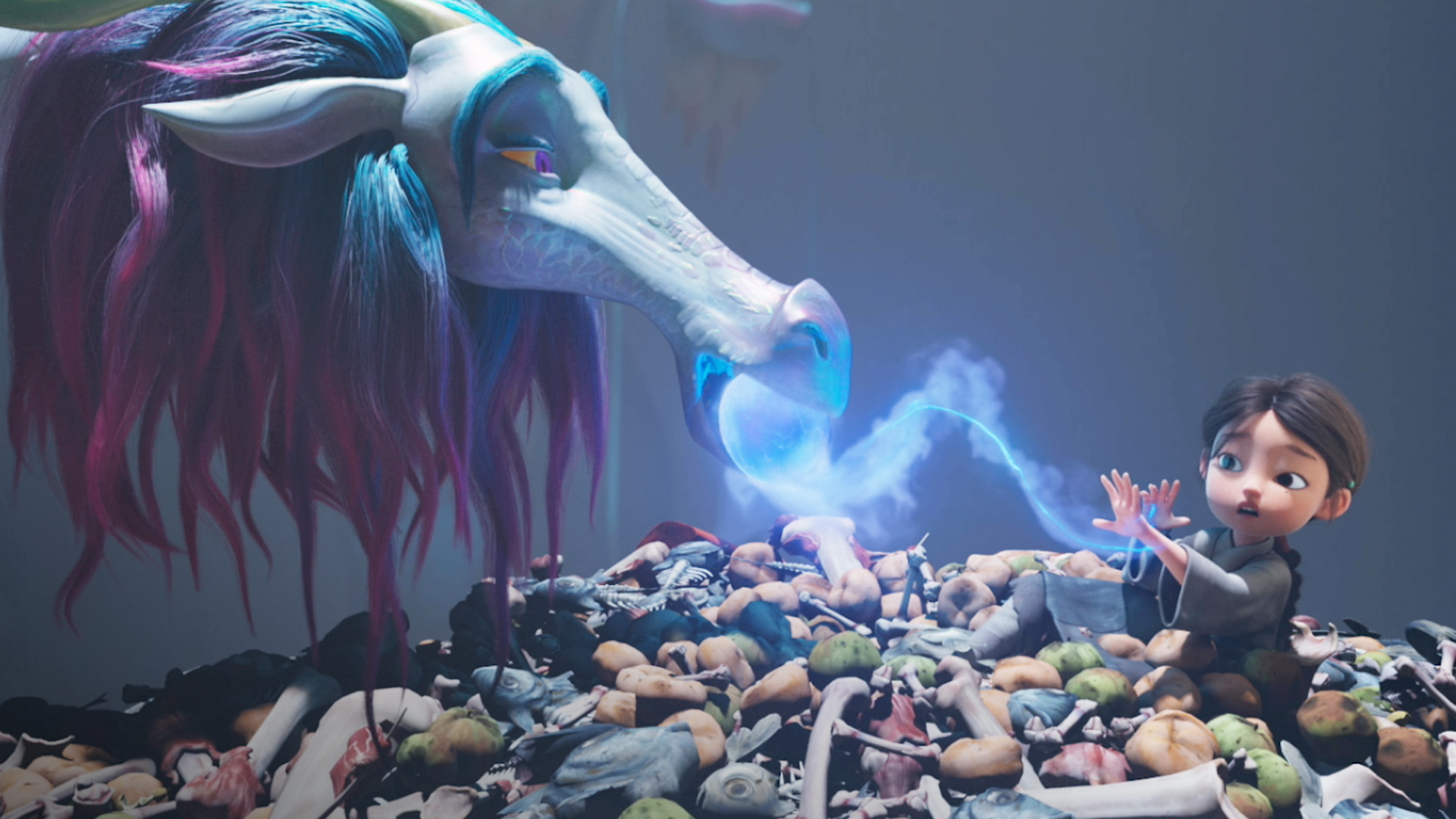 Ping encounters two dragons being held in captivity by the village’s cruel lord, Master Lan (Tony Jayawardena), who harvests their blood for sale on the black market, including to Diao. When one of the dragons dies, the other, Danzi (a completely miscast Bill Nighy) reveals to Ping that he and his mate had an egg, and it’s up to the two of them to get it to some kind of sacred healing spring so that it can hatch and maintain peace and goodness in the world, or whatever.