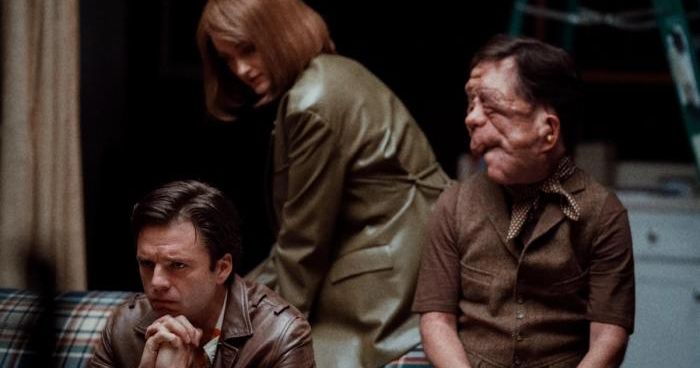 The film is an absurdist take on the idea of self-image and self-worth, and whether beauty really is skin-deep. Stan plays an actor named Edward who has neurofibromatosis, a condition where benign tumors form all over the body, but they can’t be removed and the skin can’t heal. Edward’s case is very severe, as his face is covered in large blemishes that affect his eyesight and speech, and he’s spent his life avoiding the gaze of other people. Despite training at Juilliard, his physical deformities make it so the only work he can get is in workplace sensitivity training videos. Still, he lives a quiet life in New York, and in a fun bit of character-building, he’s trying to learn how to whistle, just for that small degree of normalcy.