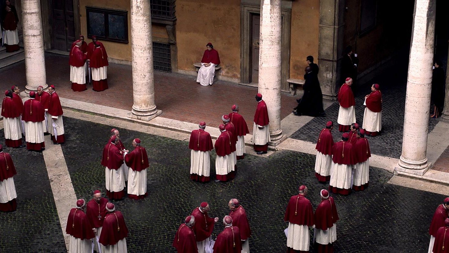 The Sistine Chapel is one of the most famous buildings on Earth, but that doesn’t mean it necessarily lends itself to cinema. Great care was taken to replicate the look of the chapel, but some liberties were taken, in order to give the place a more oppressive, prison-like feel. You can see this in the various gates, daises, and courtyards, all of which have some architecture that uses bars and barriers as a means of visual separation. Further, the papal residence, which is closed off to even the Cardinals in the wake of the pontiff’s death, is adorned with a sleek cloth rope, basically the Vatican equivalent of police tape. It’s both beautiful and depressing, and an absolutely incredible facsimile of the real thing.