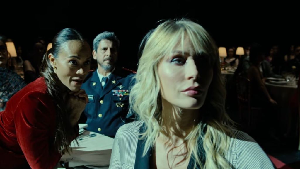Beyond that, it’s just one misfire after another. While in “Manitas” form, Karla Sofia GascĂłn grumbles her dialogue as if trying to impersonate a dying lawnmower, the subtitles being the only indication that she’s speaking intelligible words. Further, as I mentioned earlier, I can’t stand amplified sounds that aren’t naturally loud, so Zoe Saldaña’s typing was particularly grating, as was “Manitas” tapping his fingers on the table as a way to transition into another talk-song (the vast majority of all the so-called “music” in this flick), and simple acts like opening doors or walking in heels are clomped up past any level of tolerability.